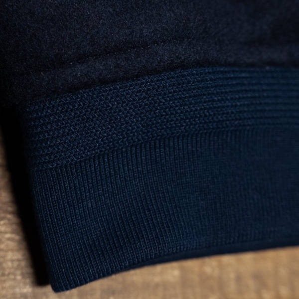 - Ribbed collar, cuffs and hem